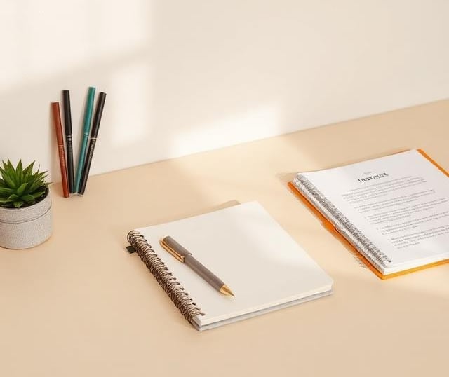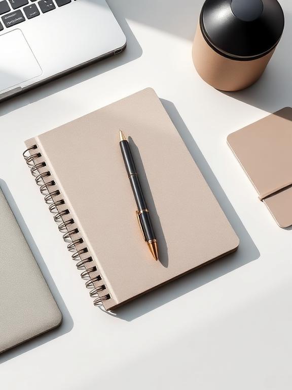 Work essentials (notebook, stationery, desk items)